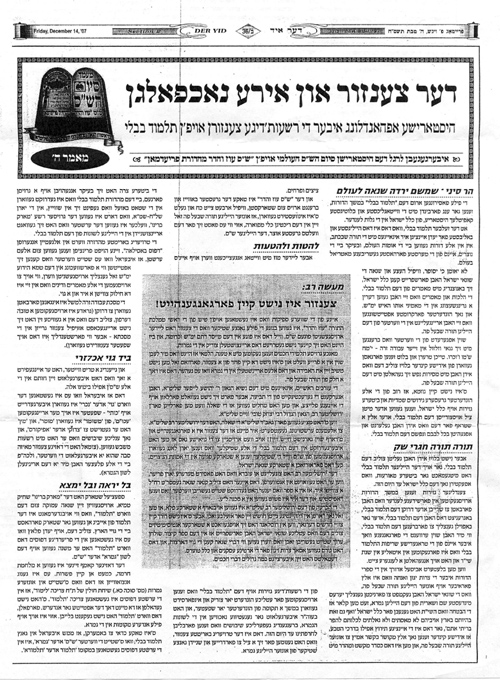 אחי הרה"ח ר'שלום שי'אבערלאנדער העביר לי צילום מאמר שהופיע בעיתון באידיש שיצא לאור בניו יארק ('דער איד'ה'טבת תשס"ח, צווייטע אפטיילונג ב/36), לכבוד סיום עריכת והדפסת הש"ס מהדורת 'עוז והדר'.